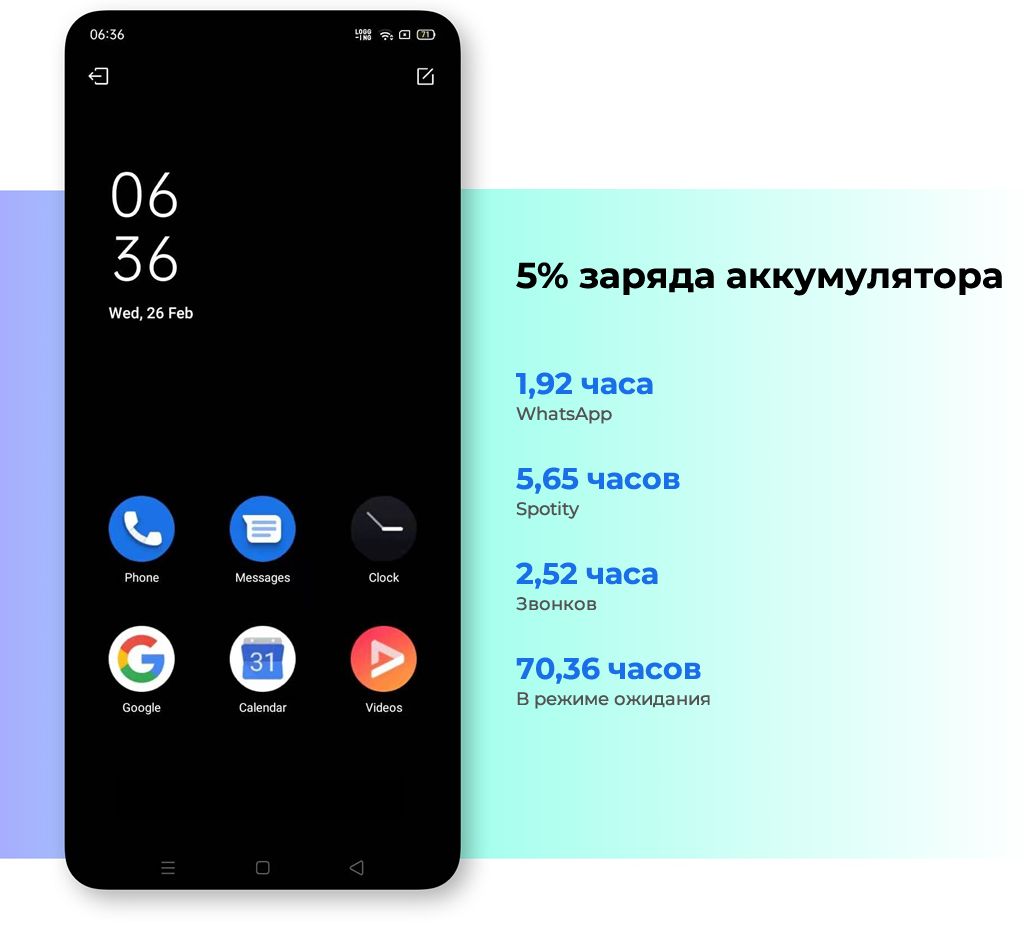 Благодаря сверхмощному аккумулятору заряда хватает на весь день. Алгоритм Quick Freeze помогает снизить нагрузку на аккумулятор за счет заморозки и снижения работы фоновой активности приложений, и регулирует работу эффектов изображения для снижения расхода энергии.