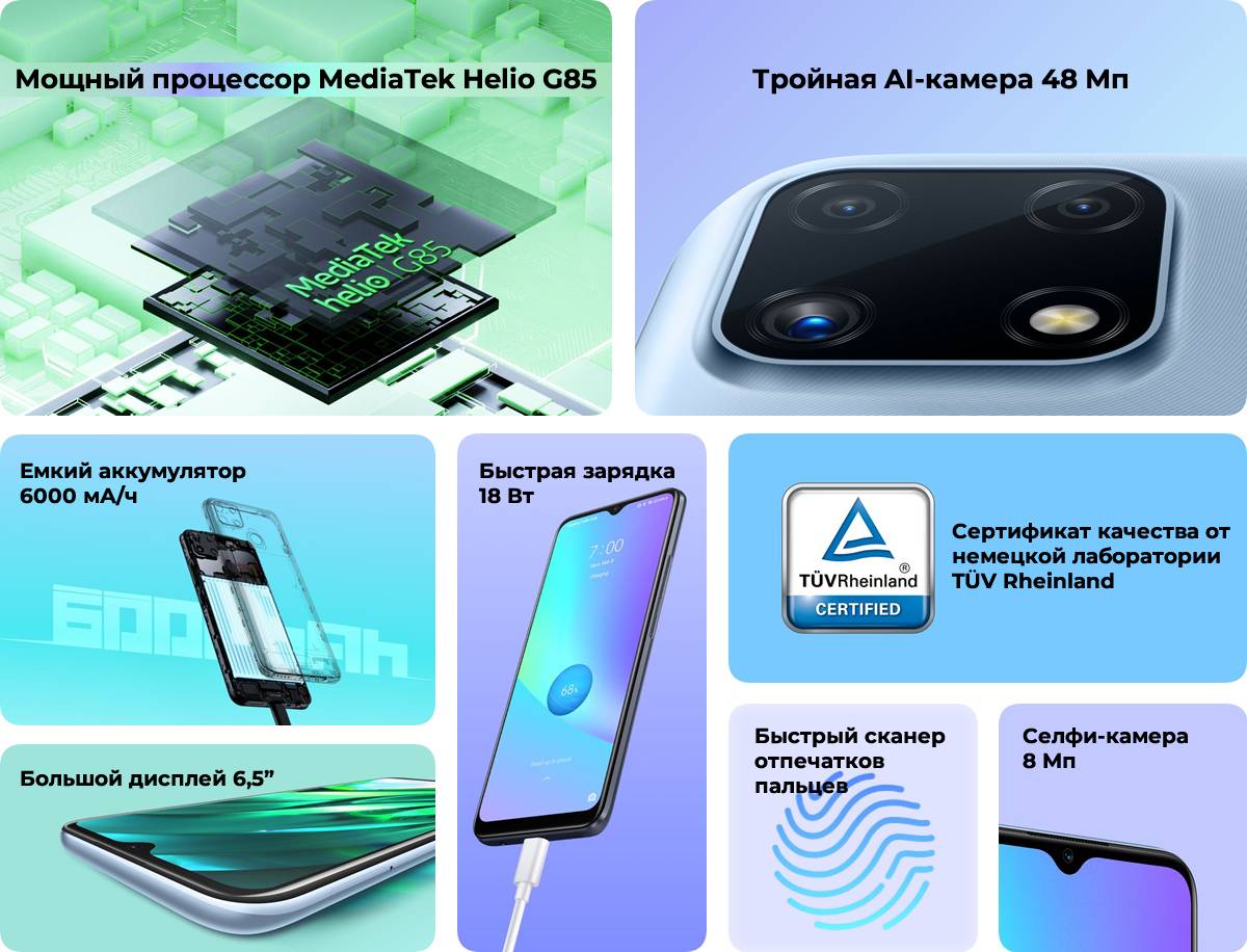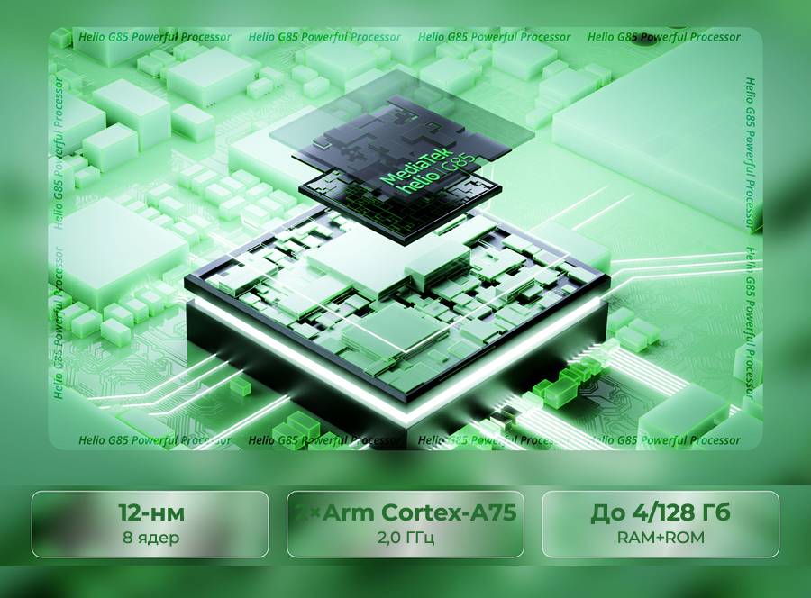 | Процессор | MediaTek Helio G85, 8 ядер |