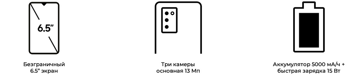 Samsung Galaxy A03s сочетает классический выдержанный стиль и мягкие тактильные ощущения. Улучшенная эргономика обеспечивает удобный хват и легкую навигацию по всей поверхности дисплея. Выбери один из трех доступных цветов: черный, белый или синий.