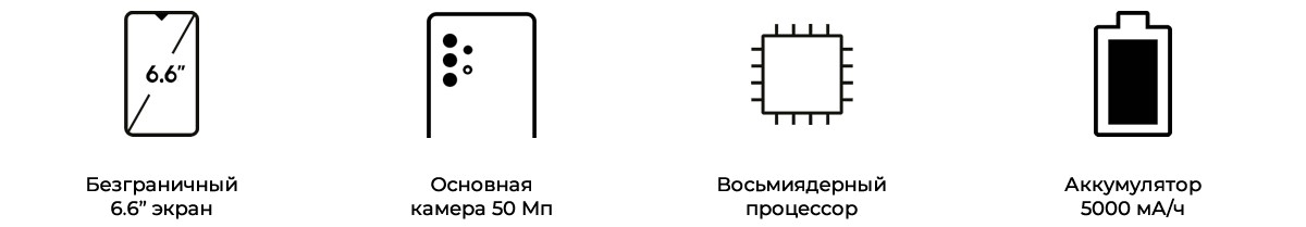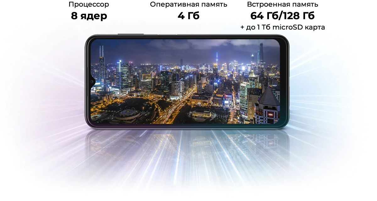Galaxy A13 оснащен восьмиядерным процессором и оперативной памятью до 4 Гб для быстрой и эффективной работы. А со встроенной памятью 64/128 Гб и картой памяти microSD до 1 Тб у вас появится еще больше места для хранения.