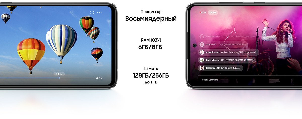 Samsung Galaxy A72 оснащен быстрым процессором и большим объемом памяти. Современный 8-ядерный процессор и оперативная память 6 Гб или 8 Гб обеспечат плавную и эффективную работу любых игр и приложений. Скачивайте и сохраняйте больше благодаря 128 Гб и 256 Гб встроенной памяти. А с помощью microSD карты до 1 Тб вы сможете хранить еще больше контента.