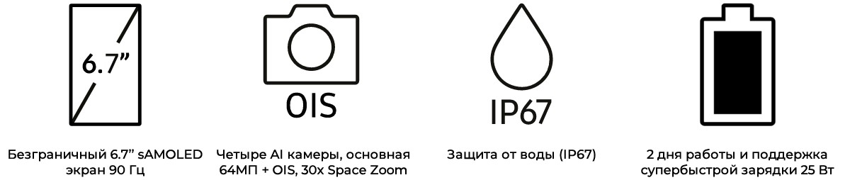 Делайте сверхчеткие снимки 64 Мп основной камерой с оптической стабилизацией изображения. Расширьте поле зрения камеры с помощью сверхширокоугольной 12 Мп камеры или снимайте удаленные объекты на 8 Мп телеобъектив, используя 3x оптический и 30x Space зумы.