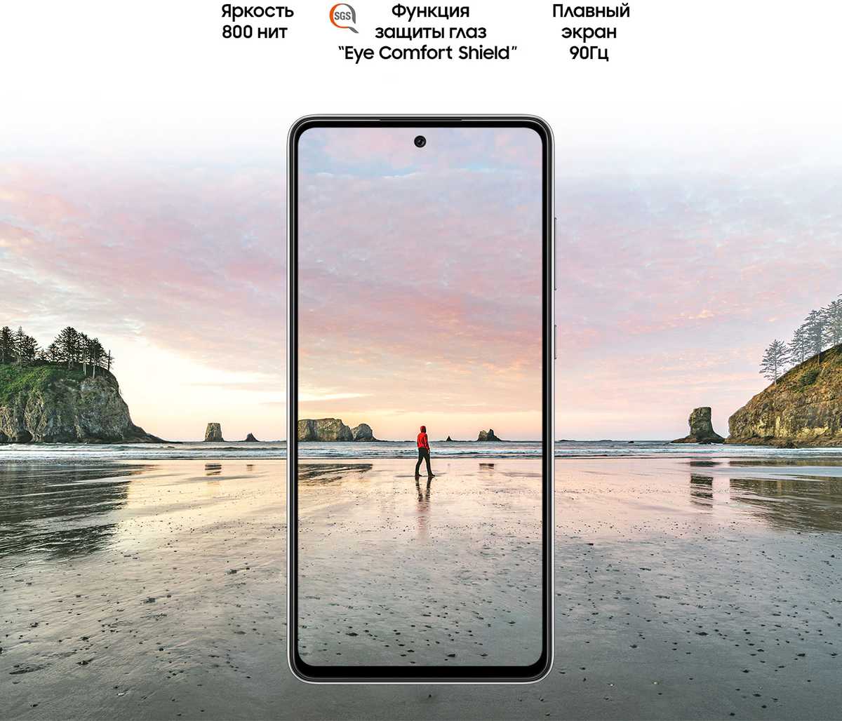 Насладитесь детальным изображением на Super AMOLED 6,7'' Infinity-O экране с разрешением FHD+ и яркостью до 800 нит, которое отлично видно даже при ярком дневном свете. Функция защиты глаз "Eye Comfort Shield" снижает уровень синего свечения, а сверхплавная прокрутка обеспечивает комфортный просмотр во время игрового сеанса или скроллинга изображения на экране.