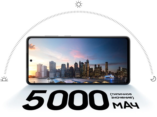 Емкость 5000 мА/ч означает, что у вас хватит времени на то, что вы больше любите - стримить, делиться фото и видео, играть и многое другое. Система управления питанием с использованием искусственного интеллекта фиксирует и анализирует ваши особенности использования смартфона и оптимизирует его производительность для увеличения продолжительности работы на одном заряде. А поддержка супербыстрой зарядки 25 Вт восстановит заряд батареи вашего Samsung Galaxy A72.