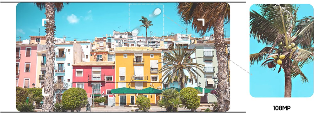 Новый датчик с разрешением 108 Мп помогает запечатлеть контрастность деталей на снимках 108 Мп с технологией "ремозаики" (remosaic shots) и добиться большей яркости на снимках 12 Мп с технологией "биннинга" (binning shots). Не упускайте из виду детали благодаря функции Detail Enhancer с технологией глубокого обучения. Используйте гибридный оптический зум для съемки отдаленных объектов. Снижайте уровень шума с помощью Big Pixel Sensor с технологией пиксельной фокусировки.