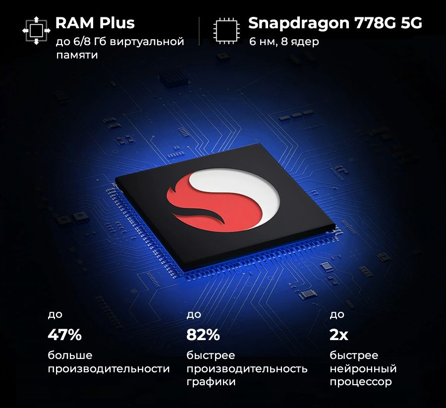 | Процессор | Qualcomm Snapdragon 778G, 8 ядер |