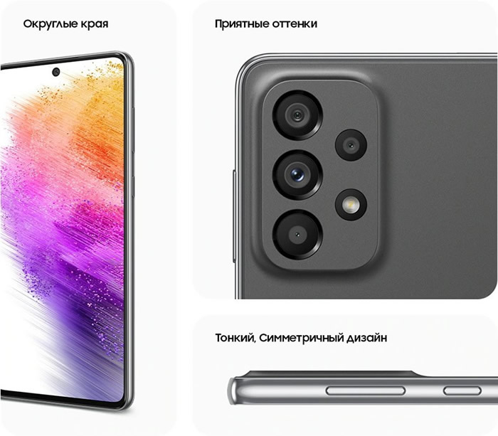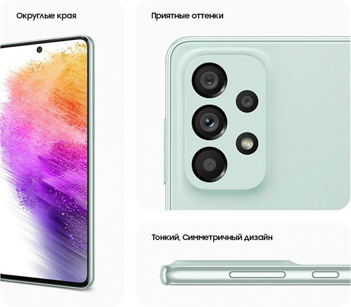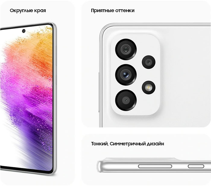 Galaxy A73 5G — сочетание изящного дизайна и повышенной производительности. Сверхтонкая рамка, яркий контрастный дисплей и невероятные возможности камеры с дизайном Ambient Edge (скругленный край) сочетаются с увеличенным временем работы от аккумулятора.