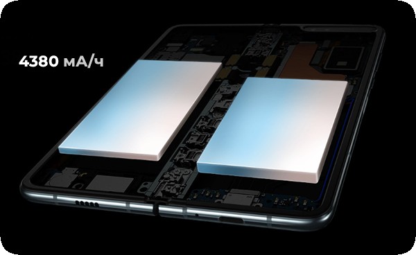 Система питания Galaxy Fold - это два аккумулятора, которые работают как одно целое: распределяют энергию и перезаряжаются, чтобы избежать перегрузки. А интеллектуальный режим энергосбережения изучает ваше пользовательское поведение, чтобы оптимально регулировать работу аккумулятора с впечатляющей типичной емкостью 4380 мА/ч.