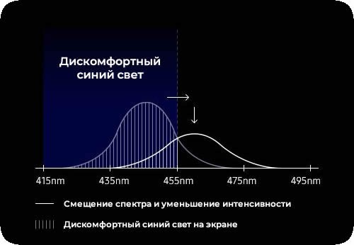 Экран уменьшает интенсивность синего спектра, чтобы вы смогли наслаждаться естественными цветами без ощущения усталости глаз.