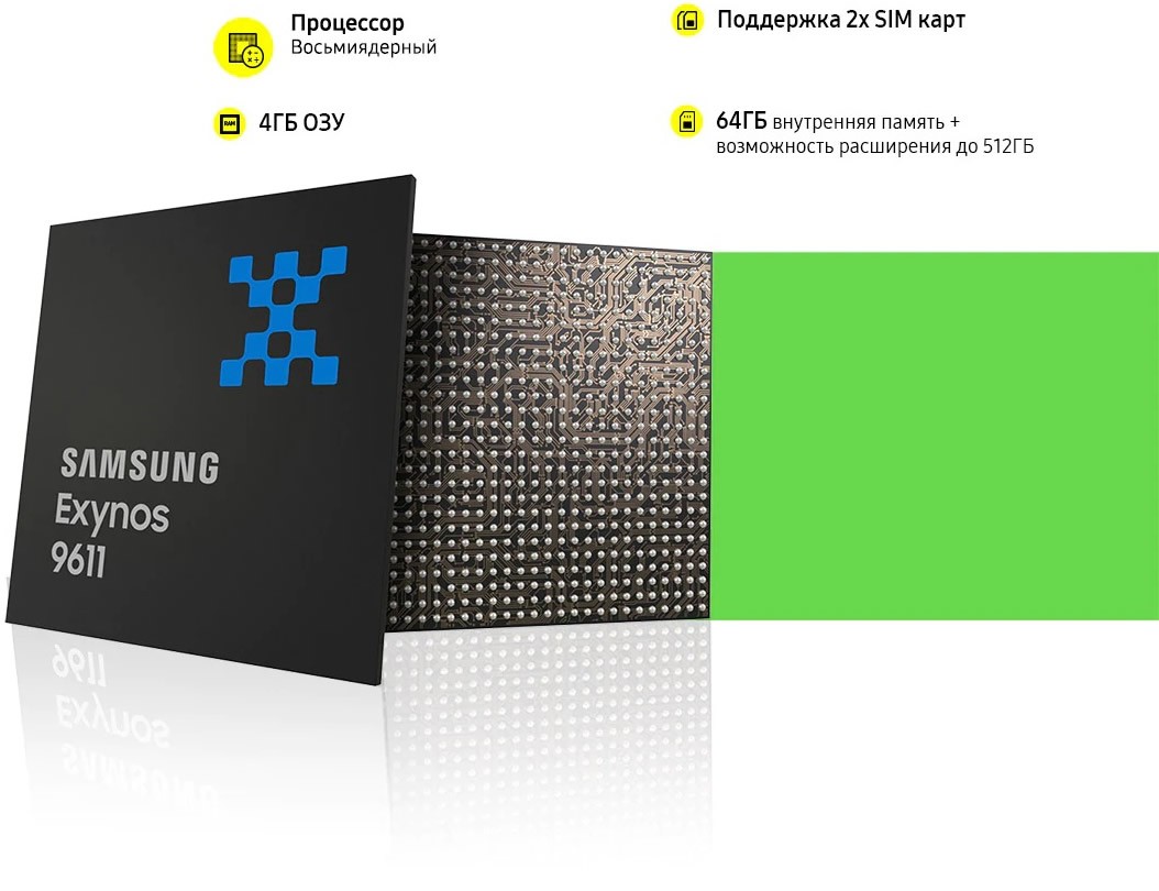 | Процессор | Samsung Exynos 9611 Octa, 8 ядер |