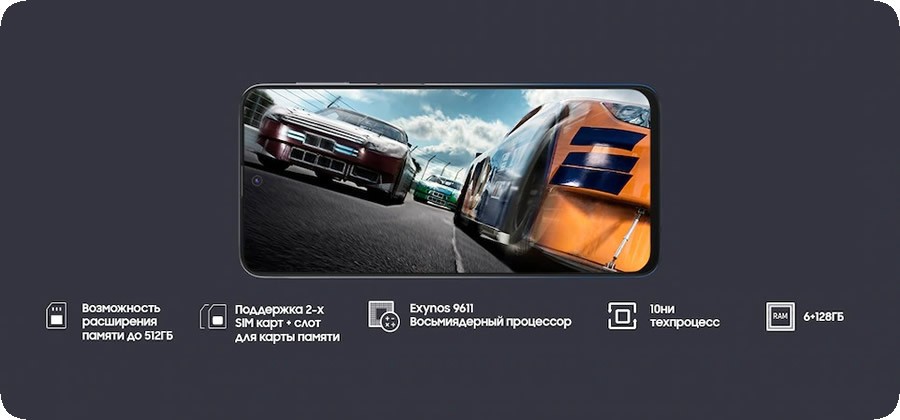 | Процессор | Samsung Exynos 9611 Octa, 8 ядер |