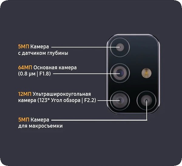 | Основная камера | 5 Мп, 5 Мп, 12 Мп, 64 Мп |