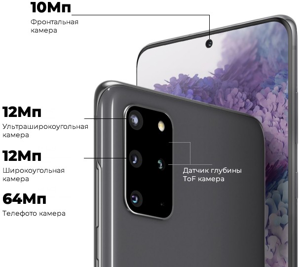 | Основная камера | ToF-модуль, 12 Мп, 12 Мп, 64 Мп |