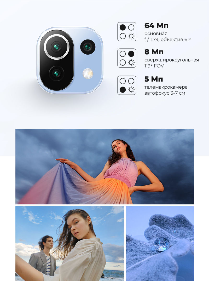 | Основная камера | 5 Мп, 8 Мп, 64 Мп |