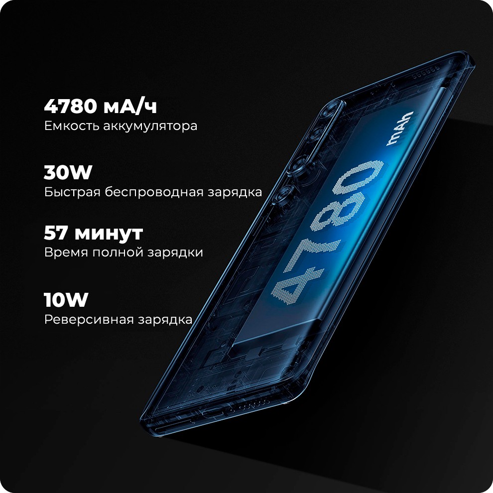 Профессиональная камера с 4 объективами и искусственным интеллектом, над которым работали лучшие инженеры в области графической обработки. Аккумулятор 4780 мА/ч с зарядкой 30 Вт, технологии памяти LPDDR5 от 8 до 12 Гб, идеальную связь, Wi-Fi 6 802.11ax, Bluetooth 5.1, жесткий диск UFS 3.0.