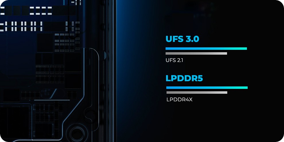 Высокоскоростная память формата LPDDR5 обеспечивает максимальное быстродействие процессора и моментальную загрузку любых объемом информации. Флеш-память стандарта UFS 3.0 обеспечивает мгновенный обмен информацией, на 20% быстрее, чем в предыдущих версиях.
