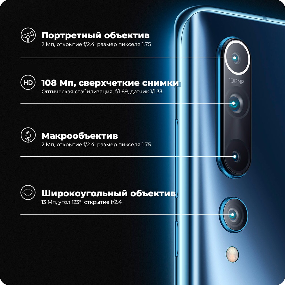 Квадрокамера Xiaomi Mi 10 уже получила высшие оценки по качеству фотографий в независимых тестах. Поддержка видеосъемки 8К подарит наилучшую четкость.