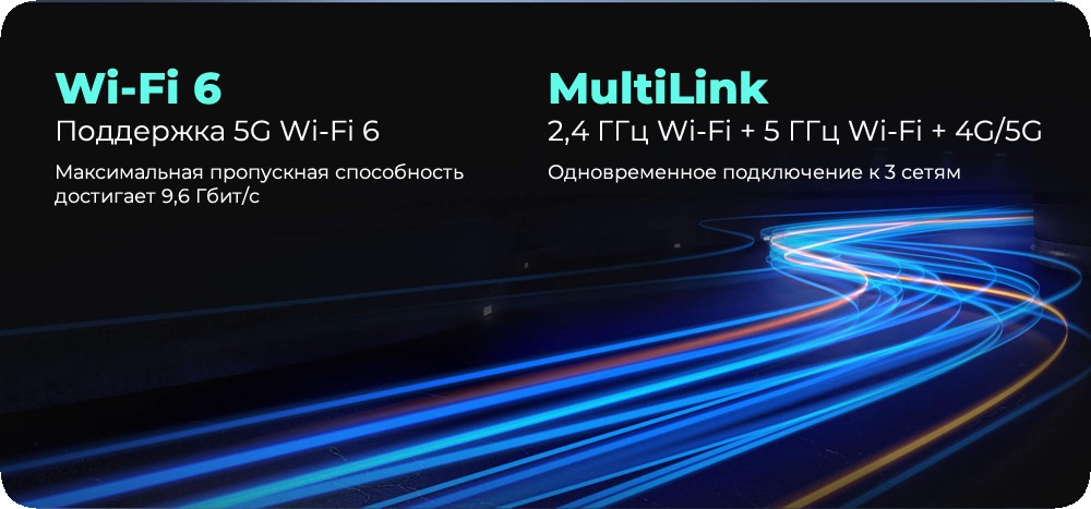Новые стандарты связи позволяют передачу данных на колоссальной скорости. Наличие отличных антенн обеспечивает прием и отправление информационных массивов - игры, видео, ролики, рабочие данные. Максимальные скорости до 9,6 Гбит/с.