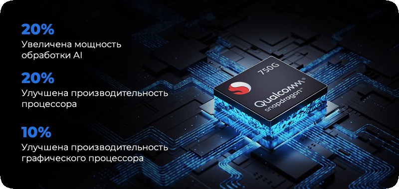 | Процессор | Qualcomm Snapdragon 750G, 8 ядер |