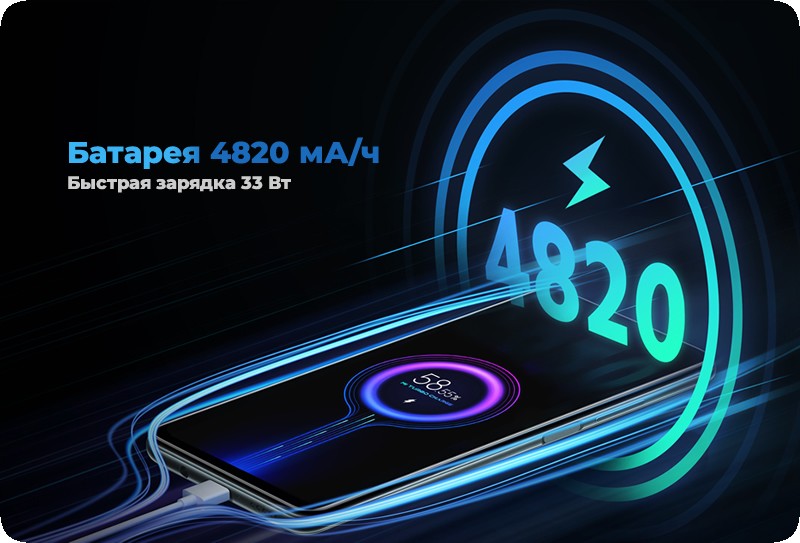 Стабильная и более эффективная технология зарядки Mi Fast Charge предотвращает внезапное падение тока. Может заряжаться до 100% за 59 минут.