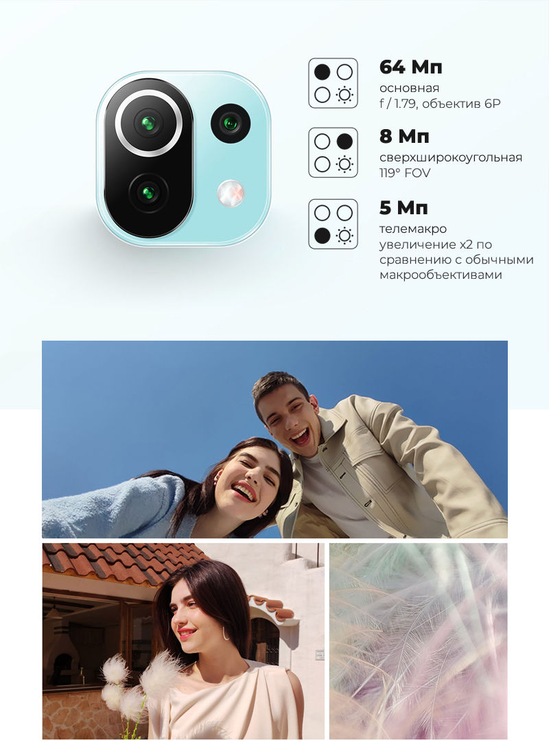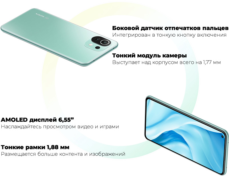 Световой ореол, окружающий основную камеру, добавляет Xiaomi Mi 11 Lite 5G элемент очарования. Улучшена защита от отпечатков пальцев, благодаря чему ваш смартфон будет выглядеть как новый.
