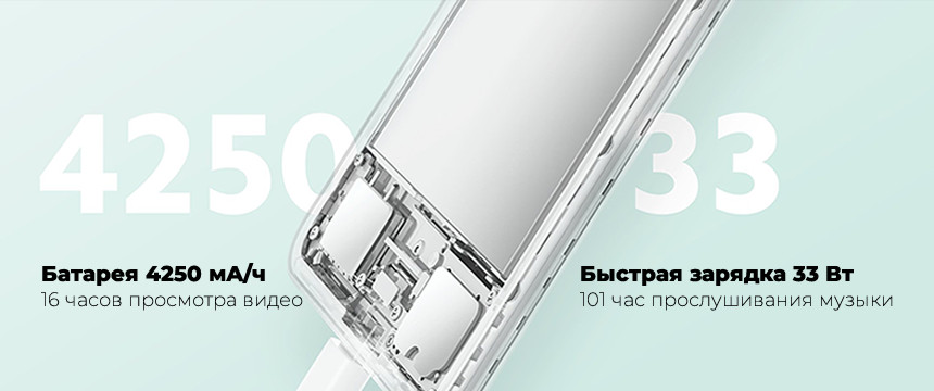 Благодаря емкой батарее 4250 мА/ч с поддержкой быстрой зарядки мощностью 33 Вт вы можете больше не беспокоиться о зарядке. Энергии хватит надолго.
