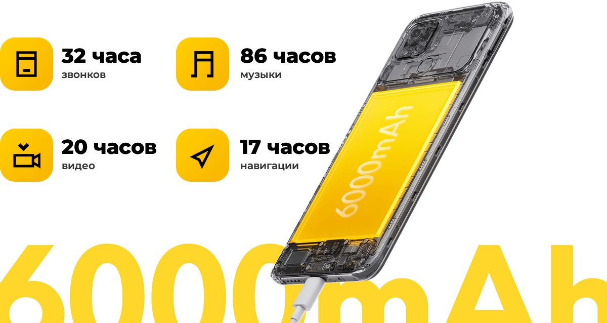 Аккумулятор большой емкости 6000 мА/ч обеспечивает долгое время автономной работы от одного заряда. Попрощайтесь с беспокойством о низком заряде батареи!