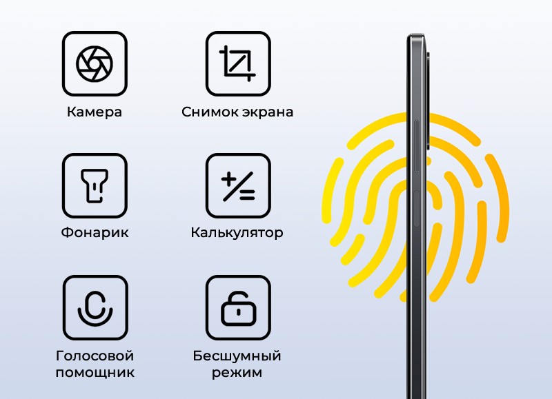 Встроенный в кнопку питания сканер отпечатка пальца обеспечивает более простую и быструю разблокировку. Для более удобной работы можно добавить различные функции быстрого доступа в настройках, которые можно активировать двумя касаниями.