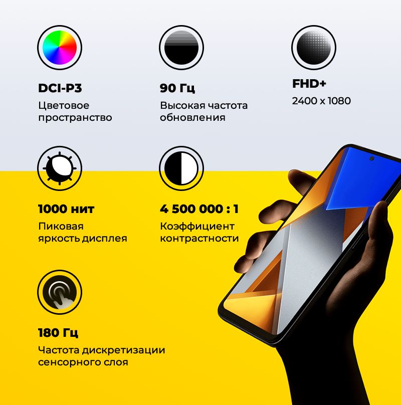 Да, вы правильно поняли! В серии Poco M теперь используется AMOLED-дисплей и поддерживается пространство DCI-P3. Кинематографическое широкое цветовое пространство в сочетании со сверхвысокой контрастностью обеспечивают эффект полного погружения.