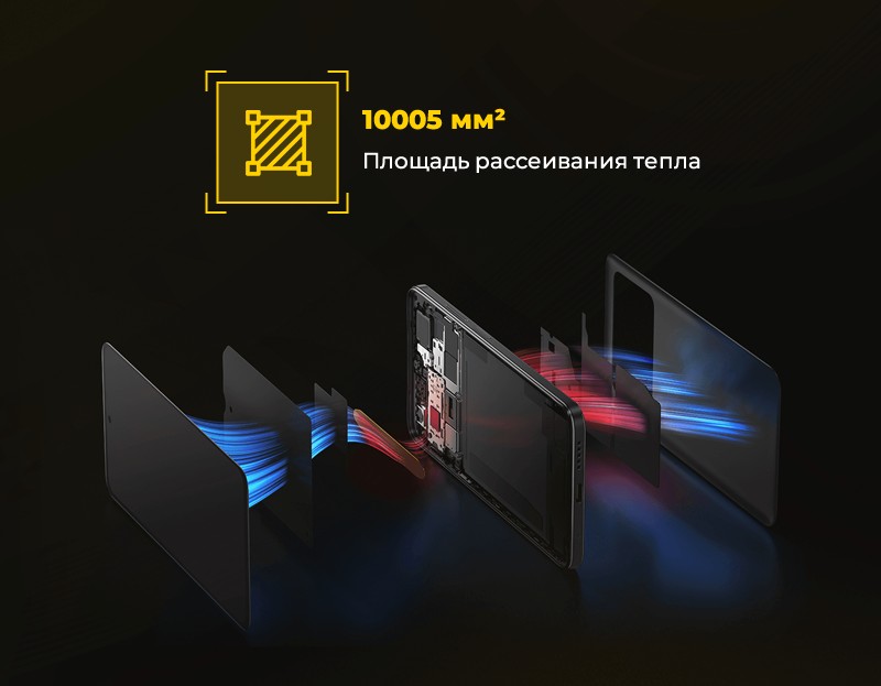 Poco M4 Pro использует большую тепловую трубку D5 с несколькими слоями материала для теплоотвода для общей площади рассеивания тепла в 10005 мм². Это позволяет корпусу охлаждаться во время быстрой зарядки и делает зарядку более эффективной, поддерживая высокую скорость работы.