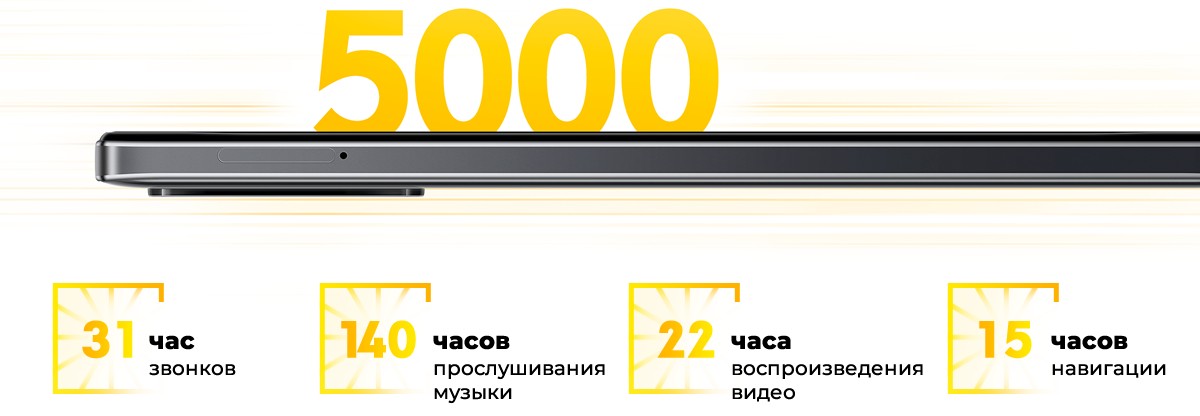 Первоклассный тонкий и легкий смартфон с аккумулятором повышенной емкости 5000 мА/ч.