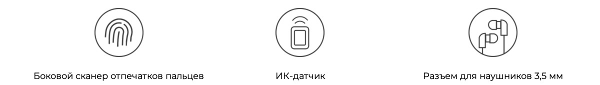 | Сканер отпечатков пальцев | встроен в кнопку включения |