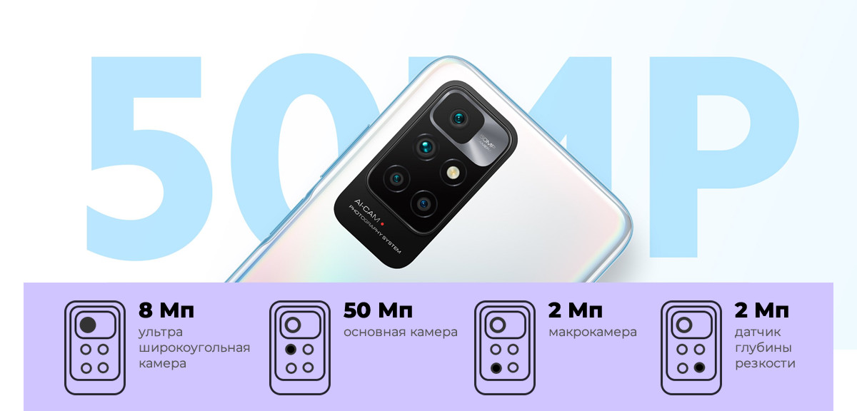 | Основная камера | 2 Мп, 2 Мп, 8 Мп, 50 Мп |