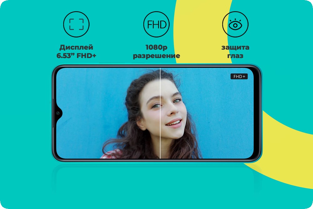 Разрешение 2340 x 1080 Full HD+ обеспечивает захватывающую визуальную картинку и качество отображения. Специальный сертификат защищает ваши глаза от вредного влияния лучей синего света. Теперь вы можете комфортно проводить долгие часы в телефоне не напрягая глаза.