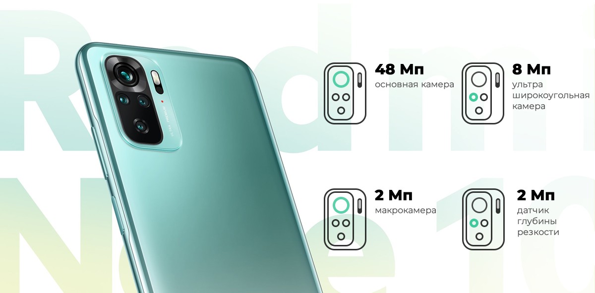Xiaomi Redmi Note 10 оснащен квадрокамерой с искусственным интеллектом, которая позволяет детально снимать все сюжеты из вашей повседневной жизни. Снимаете ли вы массивные горные хребты, различные достопримечательности, или делаете снимки крупным планом, все это получится у вас с легкостью.