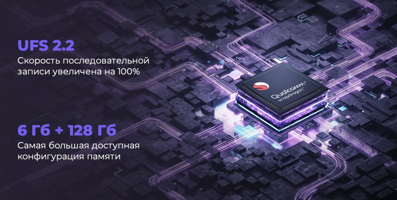 Мобильная платформа Qualcomm Snapdragon 678 предназначена для обеспечения надежной работы во время использования ресурсоемких приложений и динамичных развлечений. Повышение производительности как процессора так и графического адаптера обеспечивает улучшенный процесс игры, фотосъемку, потоковую передачу данных и многое другое. Испытайте все это на высокой скорости с впечатляющей связью.