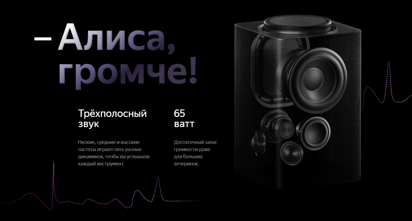 Яндекс Станция Макс — это мощная колонка, которая распространяет качественный стереозвук на всё окружающее пространство. Она играет значительно громче и чище обычной Яндекс Станции и, тем более, Станции Мини.