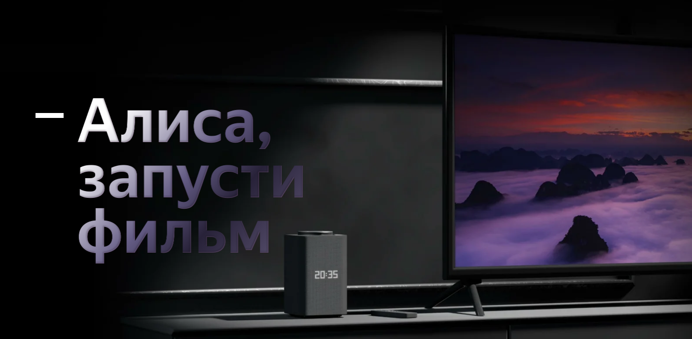 Подключите Яндекс Станцию Макс к телевизору и скажите: «Алиса, включи фильм». Голосовой помощник посоветует кино на вечер и покажет его в высоком разрешении 4К с объемным звуком Dolby Audio.