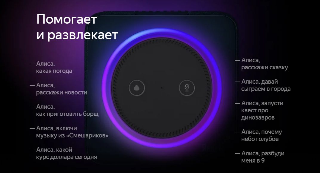 Умный голосовой помощник Алиса от Яндекс всегда живет в Станции Макс. Её можно попросить рассказать последние новости, вывести прогноз погоды, включить свет или выключить телевизор. Он легко управляет умным домом, быстро ищет информацию в интернете и всегда готова просто поболтать. В том числе с детьми. Благодаря 7 чувствительным микрофонам Алиса всегда услышит вас даже из другой комнаты, а также во время проигрывания музыки или фильмов.